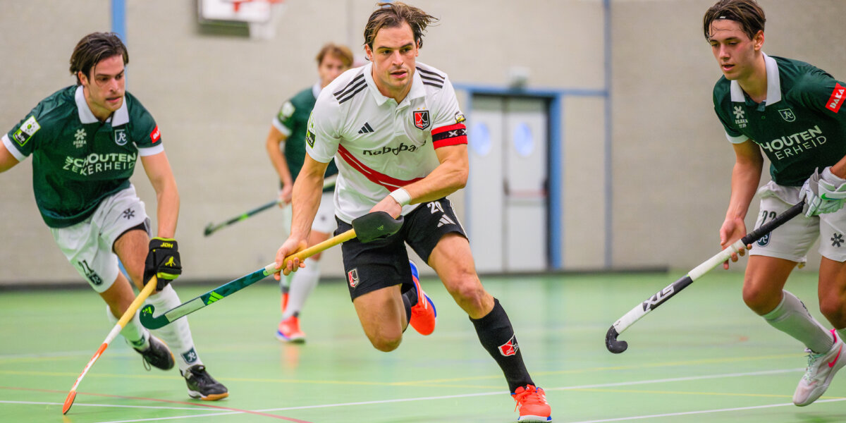 Dat wennen zat vooral in de details. De korte polsbewegingen. Het tempo. De afstemming met ploeggenoten. ‘Patroontjes’, noemt hij het. ‘Hoe leg je een bal neer, hoe wil iemand hem one touch hebben. En bij corners. In de zaal gaat alles sneller, soms vliegt die bal ineens over je stick heen. Dat soort dingen moet weer in je systeem komen.’